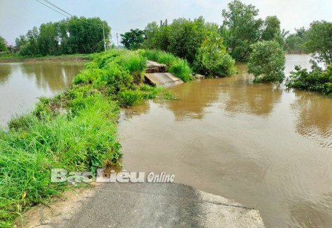 Theo phòng NN&PTNT huyện Đông Hải, khoảng 2 giờ sáng ngày 25/7 xảy ra vụ sạt lở tuyến đường giao thông nông thôn trên địa bàn ấp Vinh Điền (xã Long Điền Tây). Đoạn sạt lở khoảng 30m lộ bê-tông tiếp giáp với mé kênh, đi ngang phần đất hộ ông Tô Văn Thuận thuộc tuyến Vinh Điền - Lập Điền. Điều đáng nói, trên đoạn này có trụ điện hạ thế số 70/03, vị trí rất gần điểm sạt lở. Trong khi đó, đoạn nguy cơ sạt lở có chiều dài trên 50m tiếp giáp với phần đất ông Phạm Văn Thảo và kênh Khâu. Đoạn này trước đó đã sạt lở và có gia cố bằng cừ tràm, tuy nhiên, do nước chảy mạnh, nguy cơ sạt lở tiếp theo là rất cao. Trên đoạn này hiện tại có 3 trụ điện hạ thế nằm gần nơi có nguy cơ sạt lở.