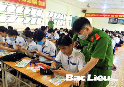(BL-ĐKC) Huyện đoàn Hòa Bình vừa phối hợp với Đoàn Thanh niên Công an huyện hướng dẫn cho hơn 500 ĐV-TN thuộc Đoàn trường THPT trên địa bàn huyện cài đặt ứng dụng VNeID - Trung tâm dữ liệu quốc gia về dân cư (ảnh).
