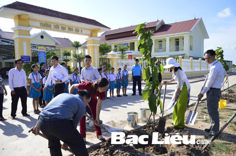 Cơ sở vật chất trường lớp khang trang, đạt chuẩn của Trường tiểu học Vĩnh Hậu C (xã Vĩnh Hậu).
