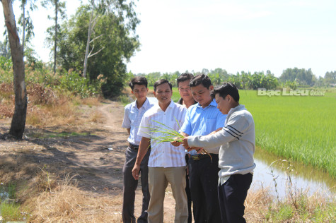Ông Nguyễn Văn Thới - Chủ tịch UBND huyện Hồng Dân (thứ hai, từ phải qua) kiểm tra tình hình sản xuất nông nghiệp trên địa bàn huyện.
