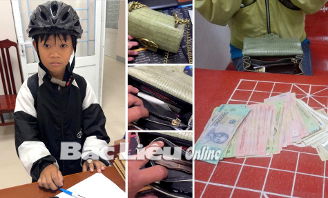 Trước đó, chiều 26/9 trên đường đi học về, em Nguyễn Gia Vỹ (học sinh lớp 7A trường THCS Đoàn Thị Điểm - ấp Bến Bào, xã Vĩnh Lộc A) nhặt được 1 túi xách nữ màu xám nên nhanh chóng mang đến trụ sở Công an xã Vĩnh Lộc A trình báo nhờ trả lại người mất. Kiểm tra bên trong túi Công an xã ghi nhận có số tiền mặt gần 11 triệu đồng và nhiều giấy tờ, vật dụng cá nhân khác.