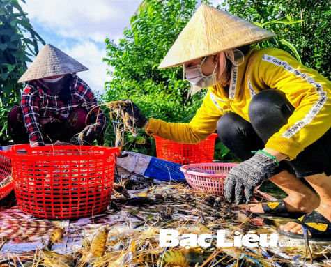 Phân loại tôm sau thu hoạch tại Hợp tác xã Ba Đình (huyện Hồng Dân). Ảnh: M.Đ