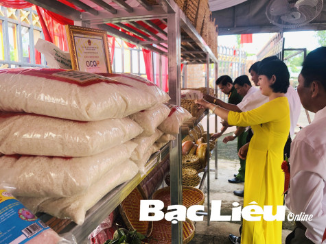 Sản phẩm gạo Hồng Dân đạt OCOP được trưng bày, giới thiệu rộng rãi.