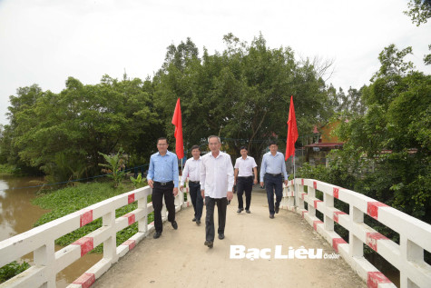 Bí thư Tỉnh ủy - Lữ Văn Hùng cùng lãnh đạo huyện Hồng Dân kiểm tra tình hình xây dựng nông thôn mới tại xã Ninh Quới A (huyện Hồng Dân). Ảnh: H.T