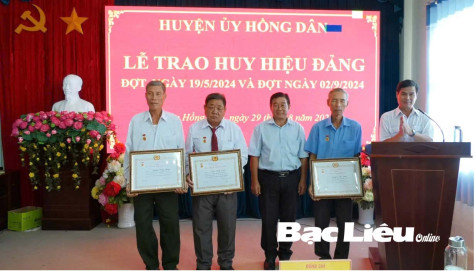 Theo Quyết định của Ban Thường vụ Tỉnh ủy, huyện Hồng Dân có 22 đảng viên được truy tặng và tặng Huy hiệu Đảng. Trong đó, truy tặng Huy hiệu 50 năm tuổi Đảng cho 2 đảng viên. Tặng Huy hiệu Đảng cho 9 đảng viên có 30 năm tuổi Đảng; 7 đảng viên có 40 năm tuổi Đảng và 4 đảng viên có 45 năm tuổi Đảng.