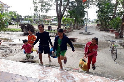 | Người dân thị trấn Rạch Gốc, huyện Ngọc Hiển vào các điểm trú bão an toàn. |