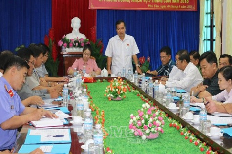| Ông Nguyễn Sơn Ca, Trưởng Ban pháp chế HĐND tỉnh, ghi nhận kết quả công tác vận động, tuyên truyền góp phần làm giảm số lượng cưỡng chế của huyện Phú Tân. |