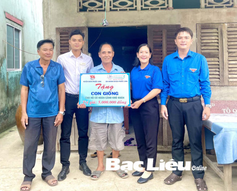 Đoàn Thanh niên huyện Phước Long tặng con giống cho hộ có hoàn cảnh khó khăn.