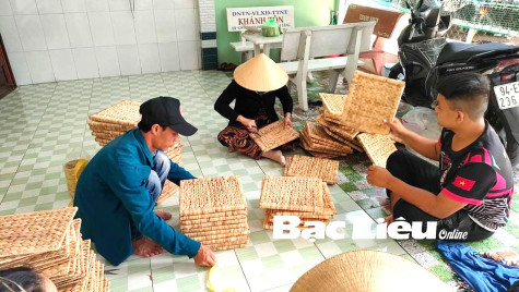 Tổ đan lục bình ở thị trấn Phước Long (huyện Phước Long) vừa hỗ trợ đào tạo nghề, vừa giúp người dân có việc làm tại chỗ. Ảnh: T.T