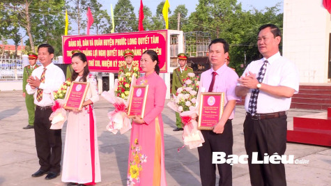 Ban Thường vụ Huyện ủy Phước Long tuyên dương các tập thể, cá nhân điển hình trong học tập và làm theo tư tưởng, đạo đức, phong cách Hồ Chí Minh. Ảnh: Vũ Quyên