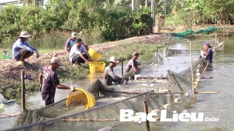 Nông dân huyện Phước Long thu hoạch cá nuôi.