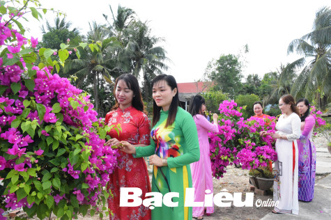 Trải dài trên hàng chục cây số tuyến đường Vĩnh Mỹ - Phước Long, Ninh Quới - Cầu Sập đi qua địa bàn Phước Long, nếu như người đi đường bị choáng ngợp bởi hoa hoàng yến thì những tuyến bên trong ấp NTM kiểu mẫu có điểm nhấn hoa dừa cạn, hoa giấy, hoa chiều tím, hoa huệ… được trồng đồng bộ gần như bao phủ hai bên tuyến đường. Chị Trương Thanh Xuân cho biết, đây là công trình của mọi người dân NTM, nhưng Hội Phụ nữ các xã, thị trấn đã tích cực vận động hội viên của mình trồng hoa, cây xanh thay thế cỏ dại ở hai bên đường, ở các khu đất trống quanh nhà. Việc làm đó vừa hưởng ứng phong trào “5 không - 3 sạch”, vừa tạo mỹ quan cho NTM. Các tuyến đường hoa được giao cho các chi hội phụ nữ quản lý, chăm sóc.