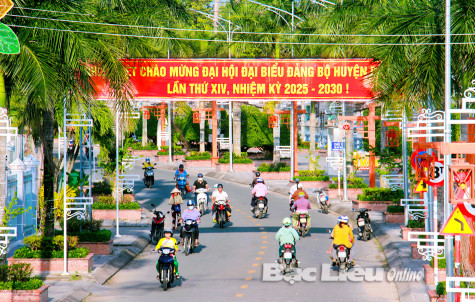 Huyện Phước Long tuyên truyền trực quan về Đại hội đại biểu Đảng bộ huyện lần thứ XIV (nhiệm kỳ 2025 - 2030). Ảnh: N.Q