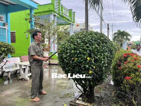 Người dân xã Vĩnh Phú Tây (huyện Phước Long) chăm sóc cây kiểng làm đẹp bộ mặt nông thôn.