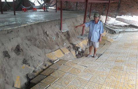 Vị trí sụp lún đất có chiều dài hơn 40 m; ngang từ 4-8 m; chổ sâu nhất hơn 1,5 m; ước tổng thiệt hại tài sản hơn 150 triệu đồng.