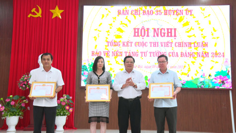Dịp này, Huyện ủy Đông Hải đã trao giải Nhất, Nhì, Ba, Khuyến khích cho tập thể và cá nhân Cuộc thi viết Bảo vệ nền tảng tư tưởng của Đảng huyện Đông Hải năm 2024 và trao nhiều giấy khen cho tập thể, cá nhân có thành tích tiêu biểu trong công tác dân vận, tổ chức - xây dựng Đảng năm 2024 - (ảnh).