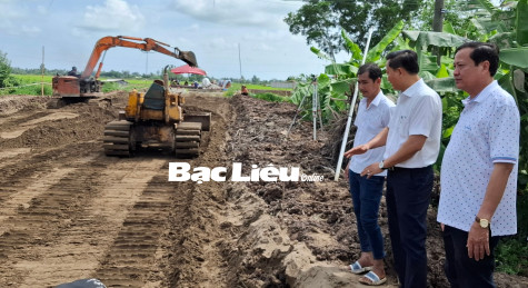 Lãnh đạo huyện Vĩnh Lợi có mặt tại hiện trường chỉ đạo đơn vị thi công quyết liệt thi công để đảm bảo tiến độ.