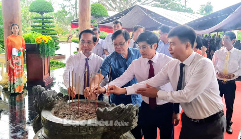 Kỷ niệm 78 năm Quốc khánh nước Cộng hòa xã hội chủ nghĩa Việt Nam (2/9/1945 - 2/9/2023) và 54 năm Ngày mất Chủ tịch Hồ Chí Minh (2/9/1969 - 2/9/2023), sáng 2/9, Huyện ủy - HĐND - UBND - Ủy ban MTTQ Việt Nam huyện Vĩnh Lợi tổ chức lễ dâng hương tại Đền thờ Chủ tịch Hồ Chí Minh (xã Châu Thới).