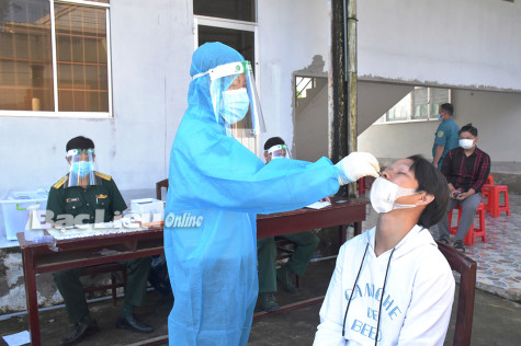 Huyện Vĩnh Lợi test nhanh sàng lọc COVID-19 cho công dân trước khi khám sức khỏe NVQS. Ảnh: T.Đ