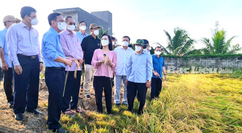 Lãnh đạo tỉnh tham quan cánh đồng sản xuất lúa Tài nguyên Vĩnh Lợi. Ảnh: M.Đ