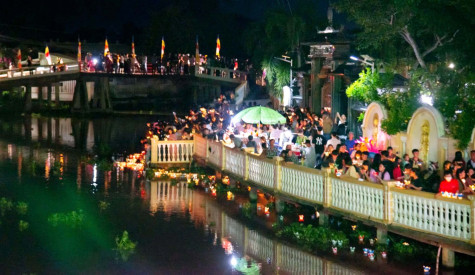 Sự kiện thả hoa đăng tại chùa Giác Hoa (huyện Vĩnh Lợi). Ảnh: M.Đ
