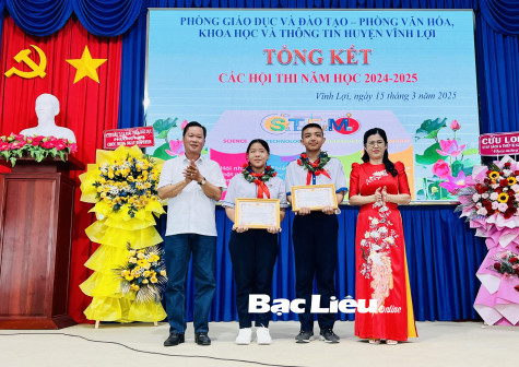 Ngày 15/3, Phòng GD-ĐT huyện Vĩnh Lợi tổ chức trao giải các cuộc thi, hội thi năm học 2024 - 2025.