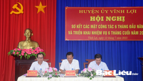 Chiều 12/7, Huyện ủy Vĩnh Lợi tổ chức hội nghị sơ kết các mặt công tác 6 tháng đầu năm và triển khai nhiệu vụ 6 tháng cuối năm 2023. Đồng chí Hồ Thanh Thủy - Ủy viên Ban Thường vụ Tỉnh ủy, Trưởng Ban Tổ chức Tỉnh ủy và lãnh đạo các ban Đảng tham dự hội nghị.