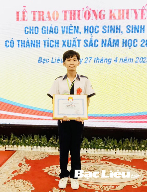 Dù gia đình rất khó khăn nhưng Huỳnh Trung Hớn (lớp 12C2, Trường THPT Nguyễn Trung Trực, TX. Giá Rai) vẫn cố gắng vượt qua mọi trở ngại để học tốt. Đặc biệt là em có niềm đam mê với môn Lịch sử và ước muốn sau này sẽ trở thành “người kể chuyện lịch sử” cho các thế hệ học sinh.