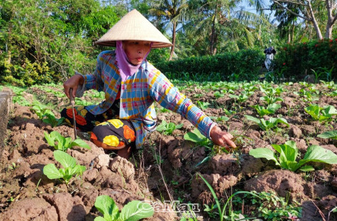 Do không có đất làm ruộng nên vụ mùa năm nay ông Trần Văn Tư, ở ấp Rạch Bào, dành toàn bộ phần đất vườn khoảng 2 công để xuống giống cải tùa xại. Tuy thời tiết không thuận lợi nhưng hiện tại vườn cải của ông cũng phát triển khá tốt. Ông Tư cho biết: "So với mấy năm trước, năm nay trồng cải tùa xại khó hơn, do mưa hoài nên lúc mới xuống giống cây cải bị úng rễ, sau khi nắng gắt trở lại, nó héo dần rồi chết luôn. Mặc dù ở đây ai cũng bị thiệt hại như vậy nhưng tỷ lệ không cao, số còn lại vẫn phát triển bình thường. Như vườn cải của tôi, năm nay tôi xuống giống sớm hơn mấy hộ khác nên đến khoảng 20 tháng Chạp là có thể thu hoạch được rồi, nếu thu hoạch sớm thì tôi sẽ làm dưa để bán, có giá hơn bán cải tươi".