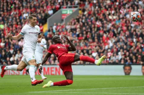 | Mane (áo đỏ) ấn định chiến thắng cho Liverpool. |