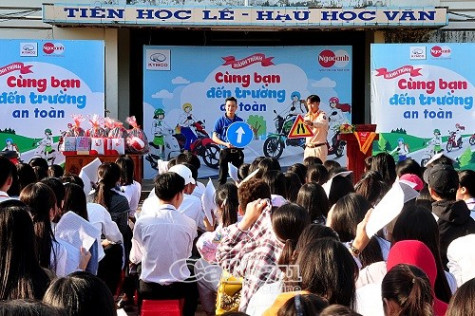 Chương trình do Công ty Ngọc Anh phối hợp Sở GD&ĐT, Ban An toàn giao thông và Cảnh sát giao thông tỉnh cùng hãng xe Kymco tổ chức sáng 22/4.