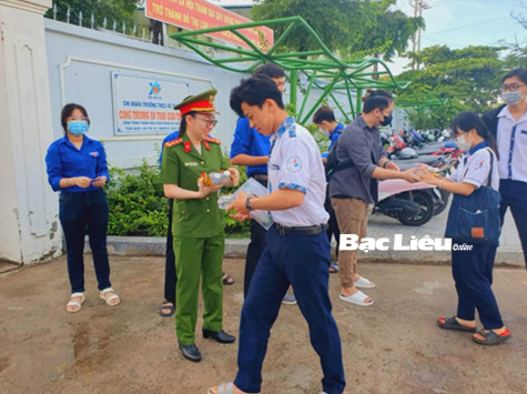 Năm nay, Đoàn Thanh niên Công an TP. Bạc Liêu vận động 60 lốc nước suối, 300 cái áo mưa và bánh mì để tiếp sức cho các thí sinh hoàn thành tốt kỳ thi. Đặc biệt, thông qua việc phát card visit có in số điện thoại hỗ trợ, các đường dây nóng sẽ liên kết nội bộ xử lý ngay những tình huống đặc biệt mà thí sinh gặp phải trên đường đến điểm thi nhằm hạn chế thấp nhất tình trạng thí sinh bị trễ giờ, phải bỏ thi do những tình huống không mong muốn.