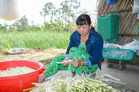 8 năm trước, khi nuôi tôm quảng canh không còn mang lại hiệu quả, anh Nguyện chuyển đổi 5 công đất nuôi tôm sang trồng bồn bồn kết hợp nuôi cá nước ngọt. Theo anh Nguyện, bồn bồn là loại cây dễ trồng, thu hoạch luân phiên mỗi ngày, giá cả lại ổn định; 5 công đất trồng bồn bồn giúp anh có nguồn thu đáng kể. Ðể đa dạng sản phẩm, anh còn muối dưa bồn bồn để bán, kiếm thêm thu nhập.