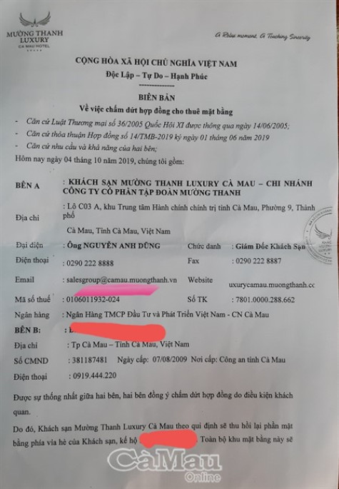 Ông Nguyễn Anh Dũng, Giám đốc Khách sạn Mường Thanh Luxury Cà Mau – Chi nhánh Công ty cổ phần tập đoàn Mường Thanh cho hay: “Đã tiến hành chấm dứt hợp đồng với các hộ kinh doanh mua bán do điều kiện khách quan, đồng thời cũng đã di dời tất cả hàng quán các hộ mua bán khác (có ký hợp đồng) ven tuyến vỉa hè đường Lê Duẩn vào khu vực bên trong hàng rào của khách sạn. Chúng tôi đảm bảo trả lại vỉa hè, lòng đường Lê Duẩn theo đúng chủ trương”.