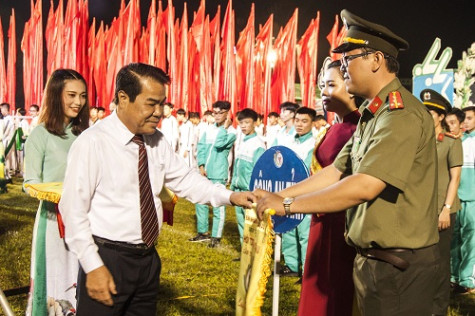 Chủ tịch UBND tỉnh Cà Mau Nguyễn Tiến Hải thắp đuốc tại lễ khai mạc Đại hội TDTT tỉnh Cà Mau lần thứ V-2018.
