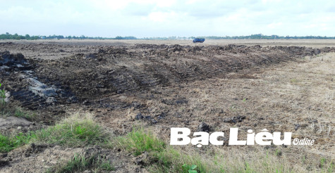Khai thác đất mặt ruộng trái phép diễn ra trên cánh đồng ấp Cù Lao (xã Hưng Hội, huyện Vĩnh Lợi). Ảnh: H.A
