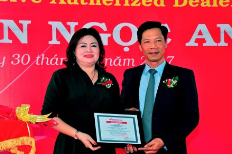 Đại diện Công ty Honda Việt Nam trao chứng nhận cho bà Nguyễn Thị Ngọc Anh.