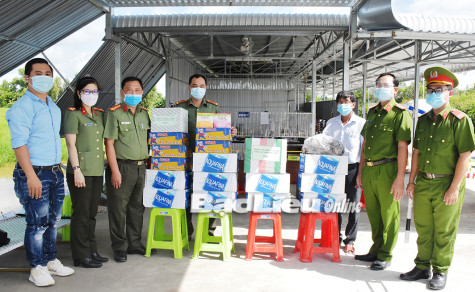 Mạnh thường quân tặng quà chốt kiểm soát dịch tại địa bàn giáp ranh giữa huyện Hồng Dân với tỉnh Sóc Trăng. Ảnh: T.Đ