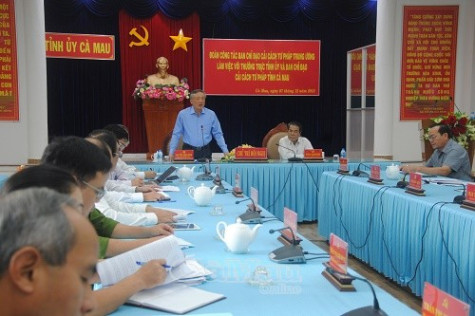 (CMO) Chiều 7/12, đoàn công tác của Ban Chỉ đạo Cải cách tư pháp Trung ương, do Bí thư Trung ương Đảng, Chánh án TAND tối cao Nguyễn Hoà Bình làm trưởng đoàn, có buổi làm việc với Ban Thường vụ Tỉnh uỷ Cà Mau về tình hình thực hiện công tác cải cách tư pháp.