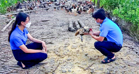 | Xã đoàn Hoà Mỹ quan tâm vận động hỗ trợ mô hình nuôi gà nòi lai của đoàn viên, thanh niên. |