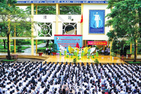 Với bề dày thành tích ấn tượng, Trường THPT Chuyên Phan Ngọc Hiển đã hoàn thành xuất sắc nhiệm vụ phát hiện, chăm bồi, đào tạo nhiều thế hệ học sinh giỏi của tỉnh. (Trong ảnh: Tiết mục văn nghệ chọn công diễn dịp họp mặt 30 năm ngày thành lập Trường THPT Chuyên Phan Ngọc Hiển được công bố tại buổi chào cờ đầu tuần). |