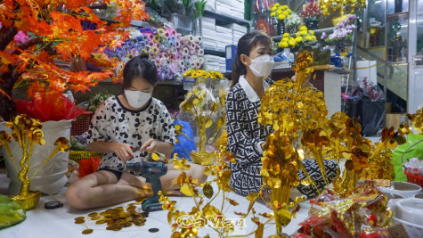 | Với nghề làm hoa thủ công, chị Quách Thị Cẩm Gương không chỉ đảm bảo cuộc sống gia đình mình mà còn tạo thêm việc làm cho chị em khác. |