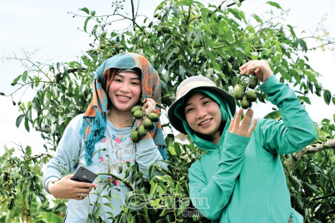 | Du khách thưởng thức cây ăn trái tại khu du lịch Tư Nhiệm (ấp Vồ Dơi, xã Trần Hợi, huyện Trần Văn Thời). |