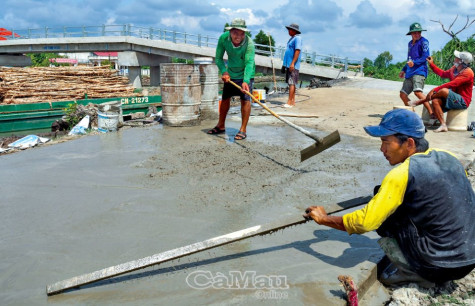 | Công trình cầu và lộ nông thôn nối từ ấp Bá Huê về trung tâm xã Tân Duyệt đang hoàn thiện, tạo điều kiện thuận lợi để bà con đi lại, giao thương. |