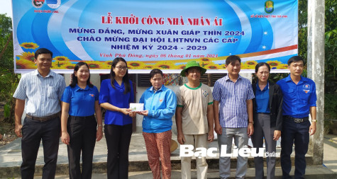 Ngày 6/1, Tỉnh đoàn Bạc Liêu phối hợp với Huyện đoàn Phước Long tổ chức Lễ khởi công nhà nhân ái cho gia đình anh Lê Văn Ngói (39 tuổi, trú tại ấp Mỹ 2A, xã Vĩnh Phú Đông) - ảnh.