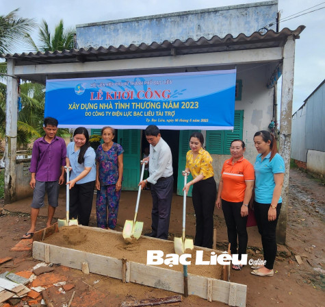 Ngày 6/6, Hội LHPN TP. Bạc Liêu phối hợp với Công ty Điện lực Bạc Liêu và Đảng ủy xã Hiệp Thành tổ chức lễ khởi công xây dựng nhà tình thương cho bà Nguyễn Thị De (66 tuổi, ấp Giồng Giữa, xã Hiệp Thành, TP. Bạc Liêu).
