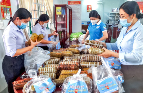 Chị Huỳnh Hồng Thắm chia sẻ: “Chúng tôi hy vọng tấm lòng sẻ chia của cán bộ, hội viên sẽ tiếp thêm niềm tin, sức mạnh, để cùng nhau chiến thắng đại dịch. Ban Thường vụ Hội LHPN huyện tổ chức bếp ăn 0 đồng, tổng số trên 15.000 suất ăn sáng và cơm hỗ trợ lực lượng làm nhiệm vụ phòng, chống dịch và công dân từ các tỉnh về quê thực hiện cách ly tập trung tại huyện. Ngoài ra, còn có 8 bếp ăn tại các xã, thị trấn, mỗi ngày nấu trên 20.000 suất cơm cho các khu cách ly tập trung, khu điều trị F0 và lực lượng tuyến đầu”.