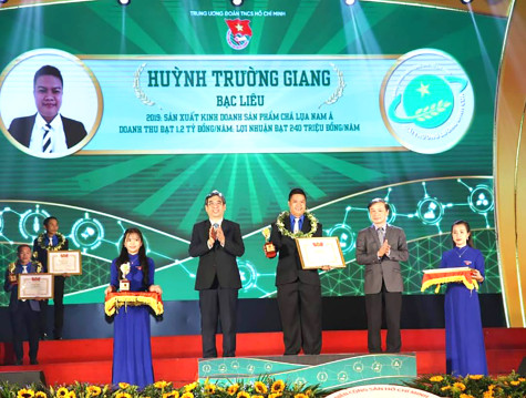 Anh Huỳnh Trường Giang (khóm 2, phường Hộ Phòng, TX. Giá Rai) nhận Giải thưởng Lương Định Của năm 2020. Ảnh do nhân vật cung cấp