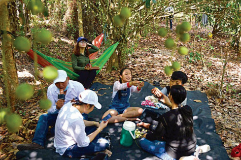 | Du khách đến tham quan, ăn uống, vui chơi và thưởng thức vị chua ngọt của dâu tại vườn. |