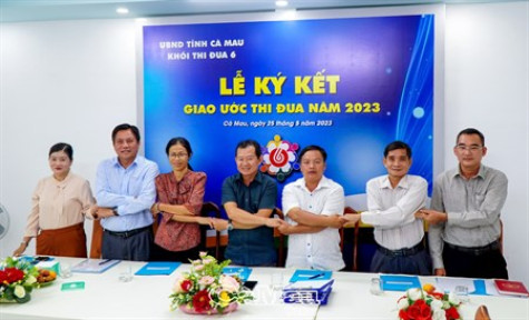 (CMO) Nhằm tạo khí thế thi đua sôi nổi, tinh thần chủ động, sáng tạo của các tập thể, cá nhân trong toàn khối phấn đấu hoàn thành xuất sắc nhiệm vụ được giao, chiều 25/5, tại Báo Cà Mau (đơn vị Khối trưởng), đại diện các đơn vị thuộc Khối thi đua 6 đã tiến hành ký kết giao ước thi đua năm 2023. Dự lễ ký kết có bà Lâm Thị Cẩm Tú, Phó trưởng Ban Thi đua - Khen thưởng (Sở Nội vụ).